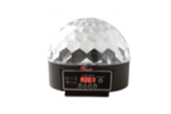 6顆3W燈珠,透明球體,五個(gè)顏色:紅綠藍(lán)白黃。帶聲控,自走,DMX512,尺寸:160*160*175mm。起訂量1箱12臺(tái)。