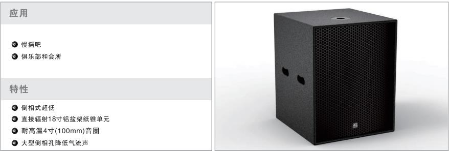 揚聲器單元:1×18″(100mm音圈)低音單元;